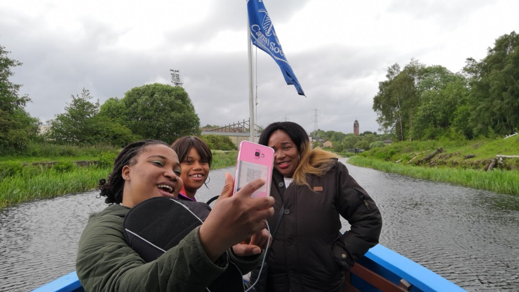 Photographs: Participants enjoyed looking at the area they were very familiar with but this time from the water point of view. They notice how wild life behaved on the water and the debris hat was floating around. The locality looked different from the water too: the participants looked at work that was happening at their neighborhood in a different way, because looking to the world from the changes one's perceptions. Participants asked the volunteers about canal distances and they learned about the amount of time it would travel to places such as Edinburgh on the canal. Perceptions of the city change when one thinks while on water.