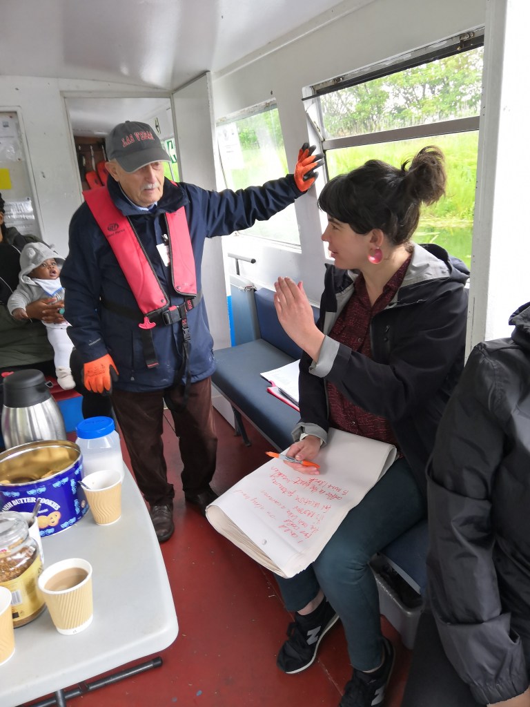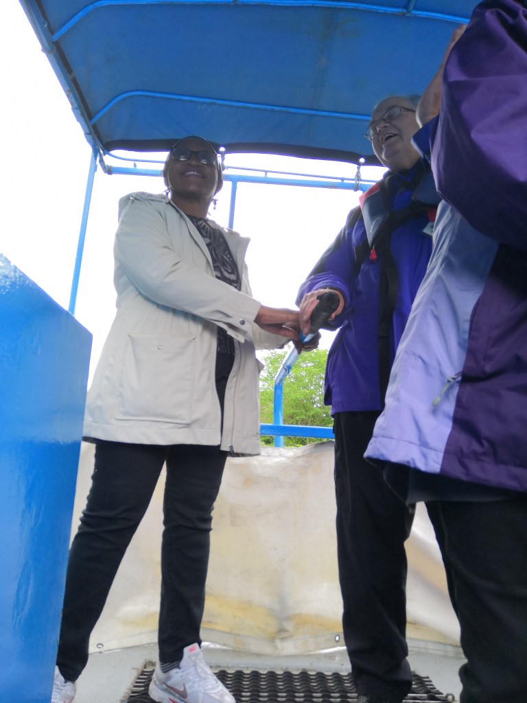 Photographs: These are all images from the cruise with the FCCS boat Gipsy Princess. The cruise was, for some of the participants, the first time on the water. To others the cruise reminded them water journeys back home, on other waterways. FCCS volunteers were happy to chat with the participants and share their knowledge of canal boats and canal journeys. The photographs show participants on the tiller, navigating the boat down the canal, under the instructions of the Society's volunteers.