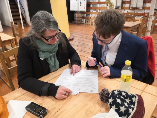 One of the participants in the case study, from the boat building activity in Kirkintilloch, took the role of the interviewer. I trained them in basic interview techniques and we devised open ended questions for the interviewees.