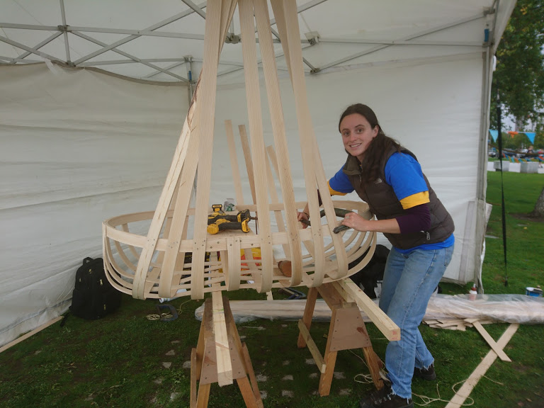 During Clydebuilt Festivals at the end of the summer, volunteers build a coracle (a small vessel made out of wood and stretched fabric) and they invite visitors to the festival to join in. Credit: Author's own.