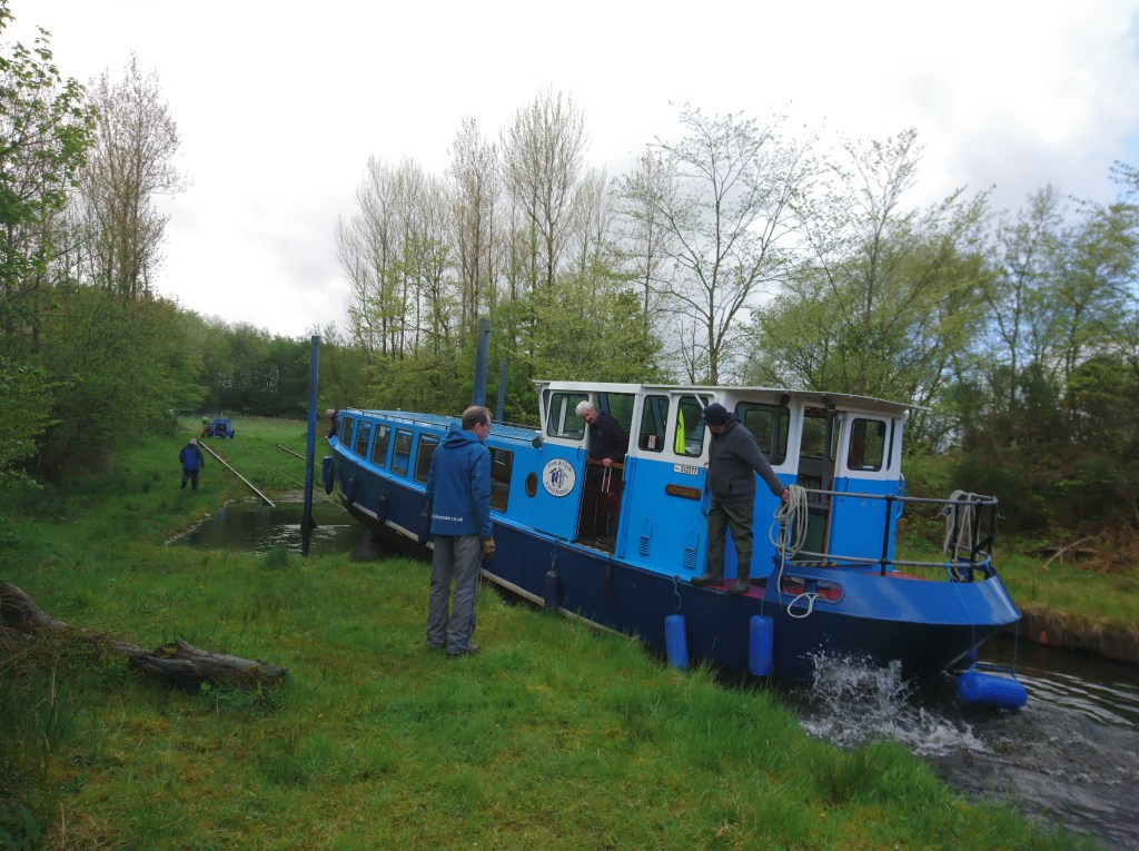 Photographs: The FCCS maintains the boats often by slipping them on the bank of the canal. The slipways don't only provide access to the water but they help the boats getting out of it to be repaired. Slipping a boat up a slipway is a skillful job. The FCCS helps other groups and individuals to use the slipway and the the machinery related to it. Credit: Author's own.