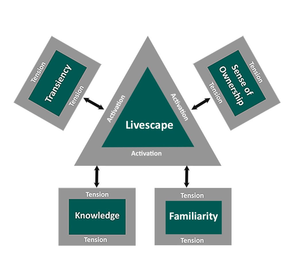 This research suggests a model of engagement with the heritage landscape: the activated livescape. the livescape, when activated, uncovers the tensions that exist in that locality. The research has identified four main tensions in the heritage landscape that affect meaningful engagement: transiency, familiarity, knowledge, and sense of ownership.