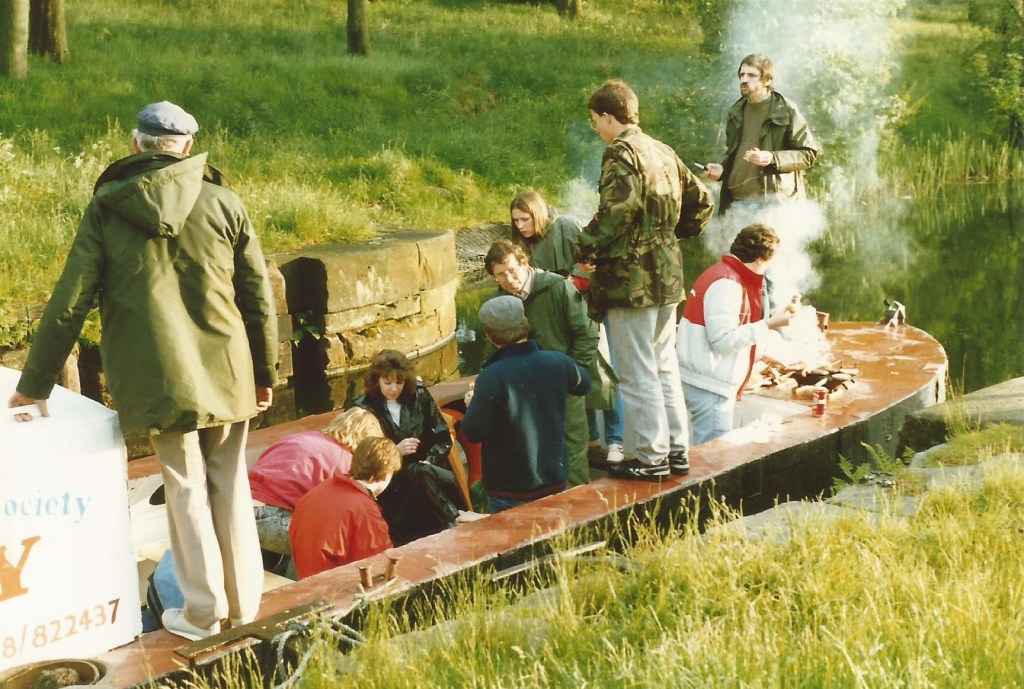 Photographs: Images from the FCCS's campaign to re-open the FCC to throughout navigation. Bbq on a barge with visitors; Canal clean up. Credit: FCCS archive.